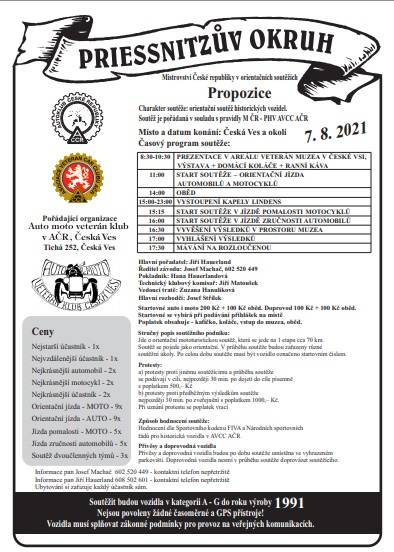 PRIESSNITZŮV OKRUH 2021Orientační závod historických vozidel se letos uskuteční 7.8.2021 Přihláška, plakát a propozice jsou ke stažení po rozkliknutí níže na této stránce v souboru PDF. | ||||||||||||