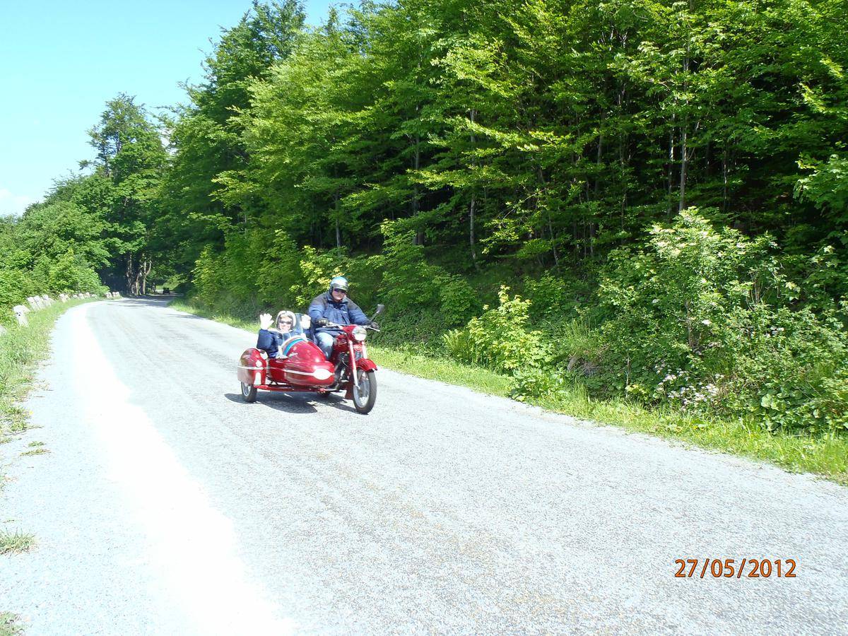 Ivan Štěpán, reprezentant Československa v motocrossu, se svojí manželkou v sidecaru.